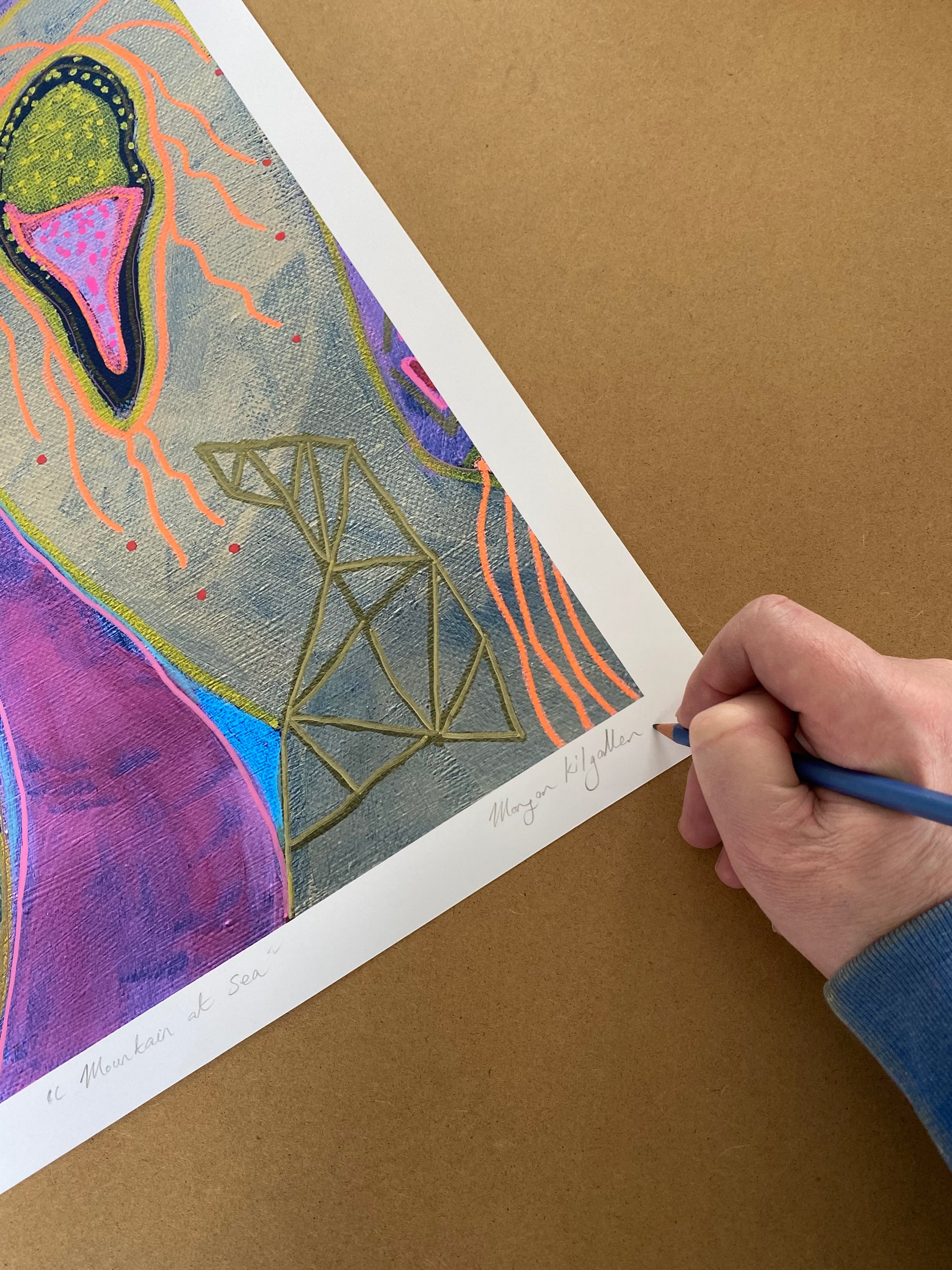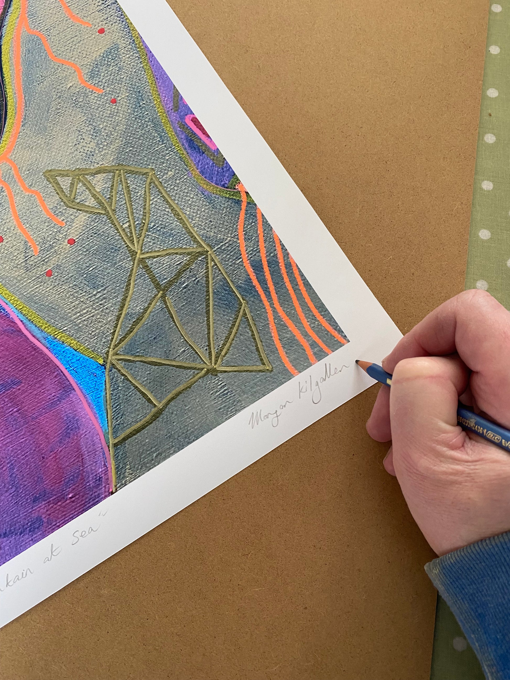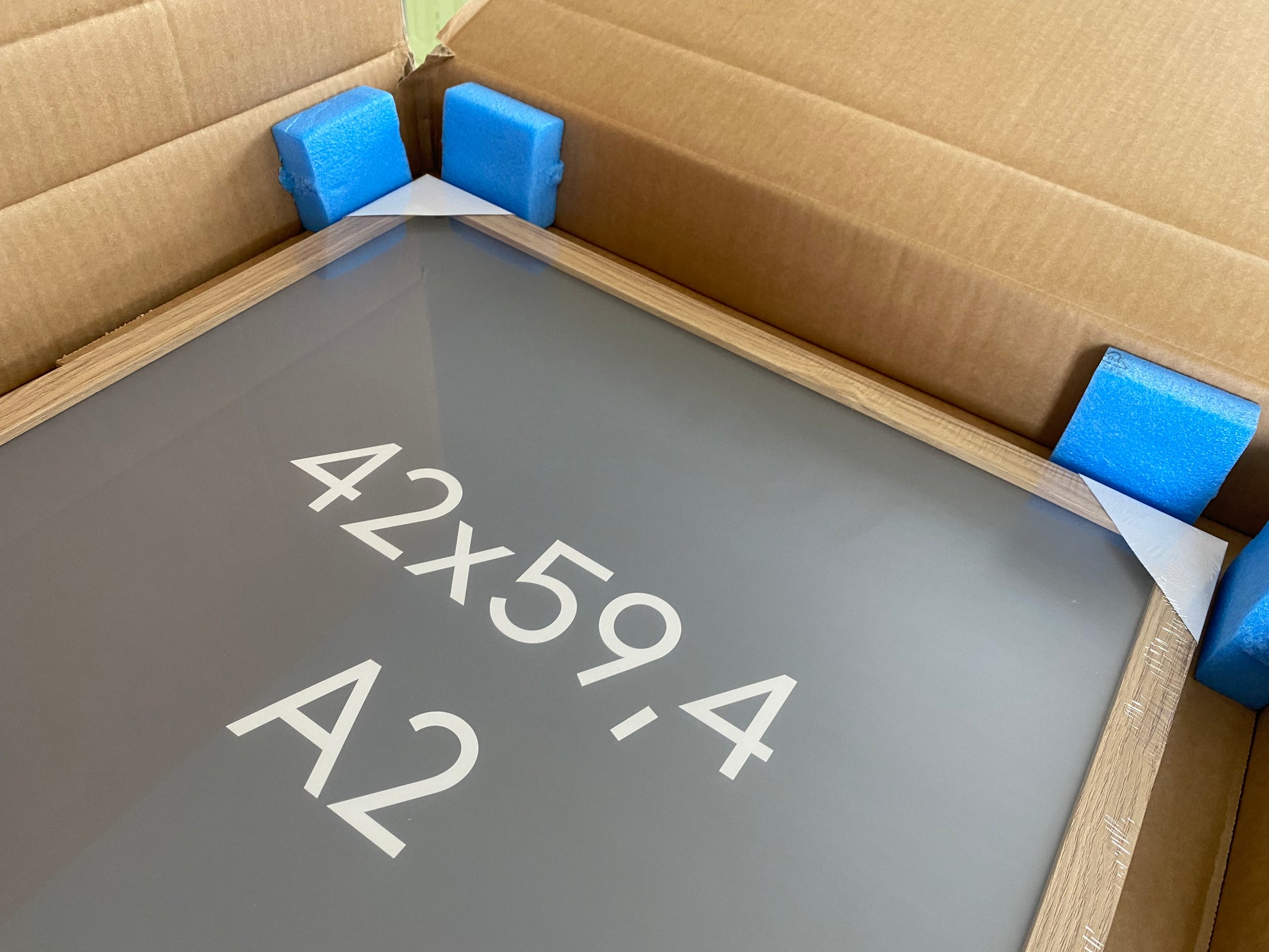 A beautiful contemporary pastel abstract landscape scene on paper ,A2 size with white border framed in solid Oak