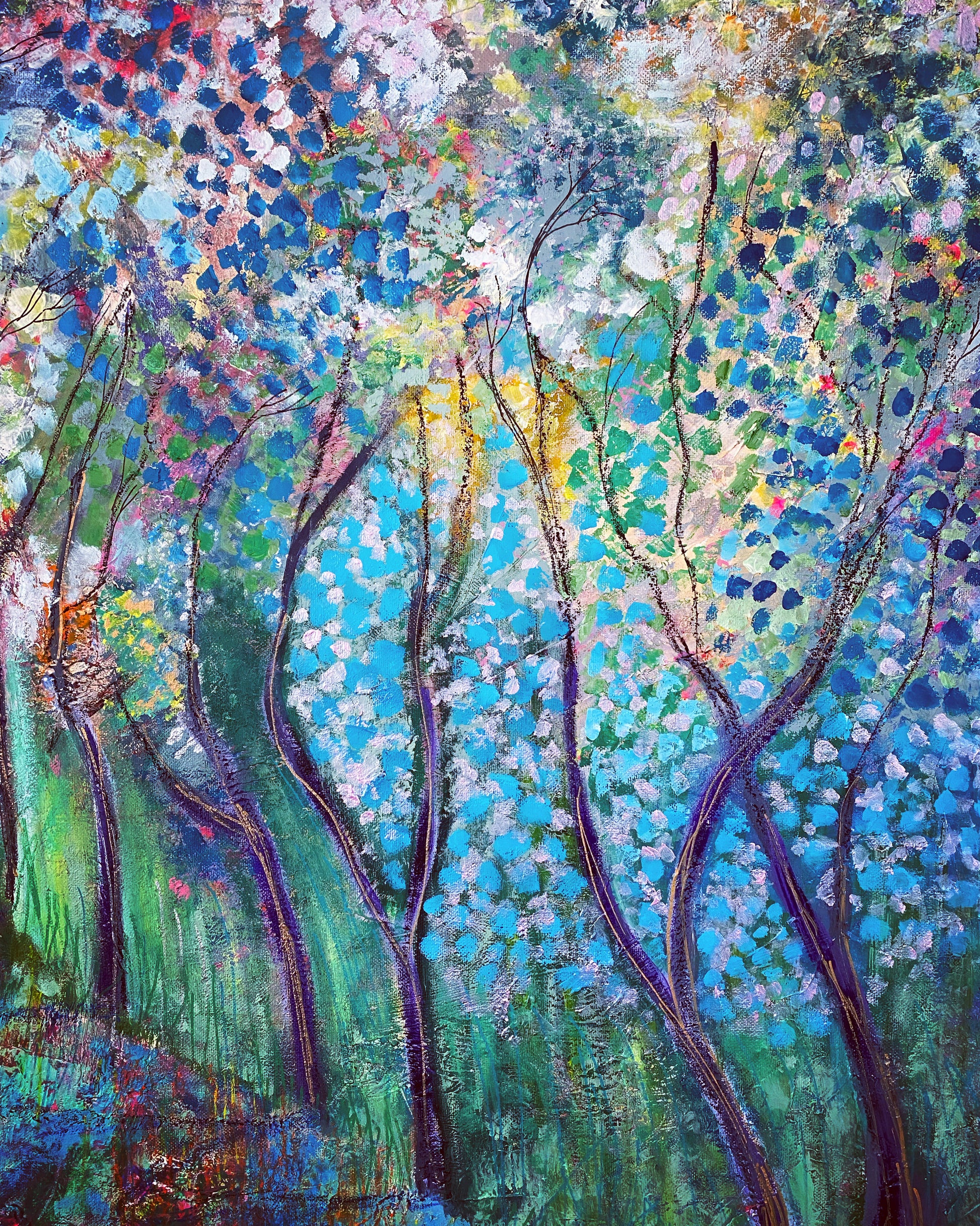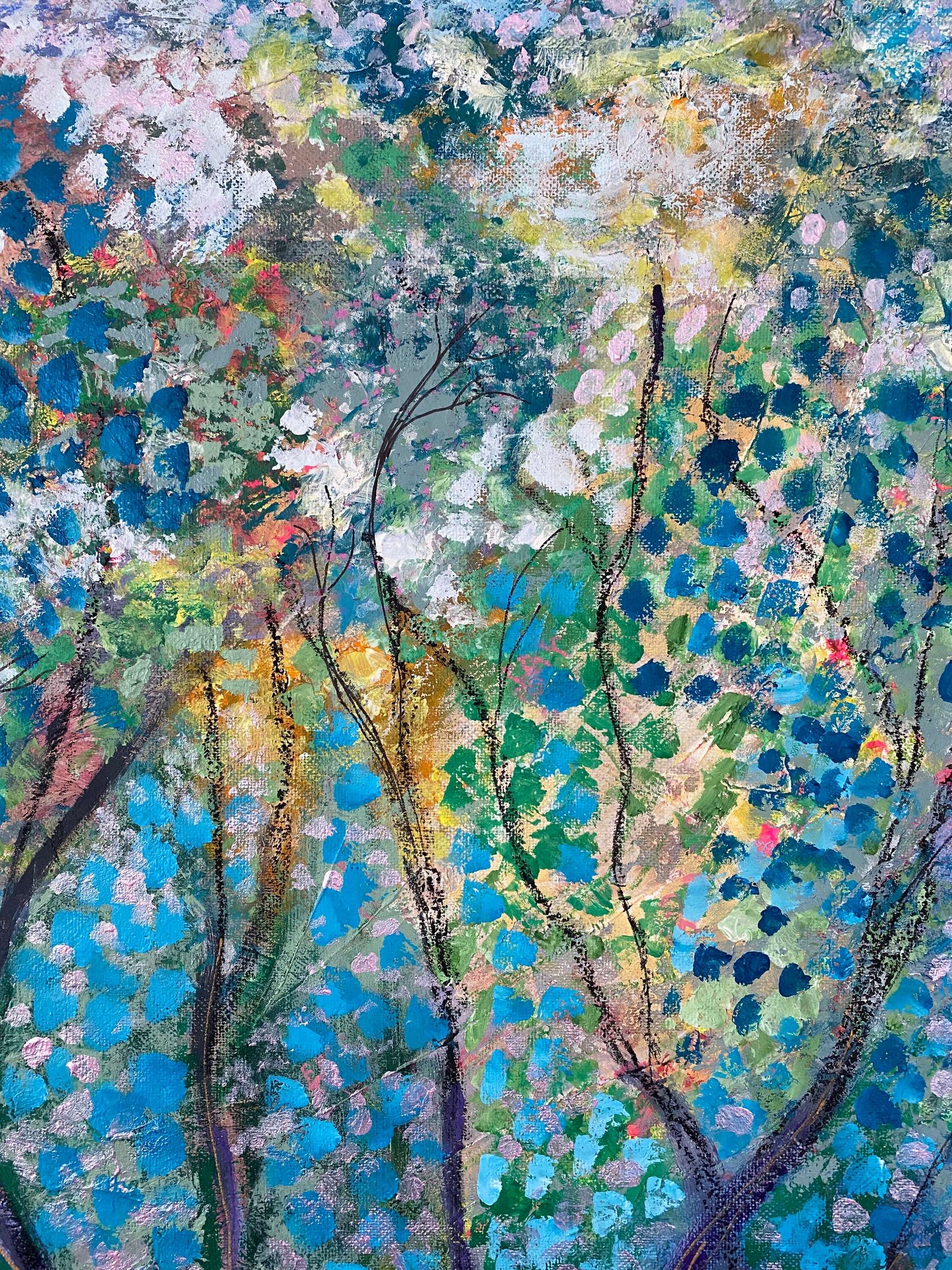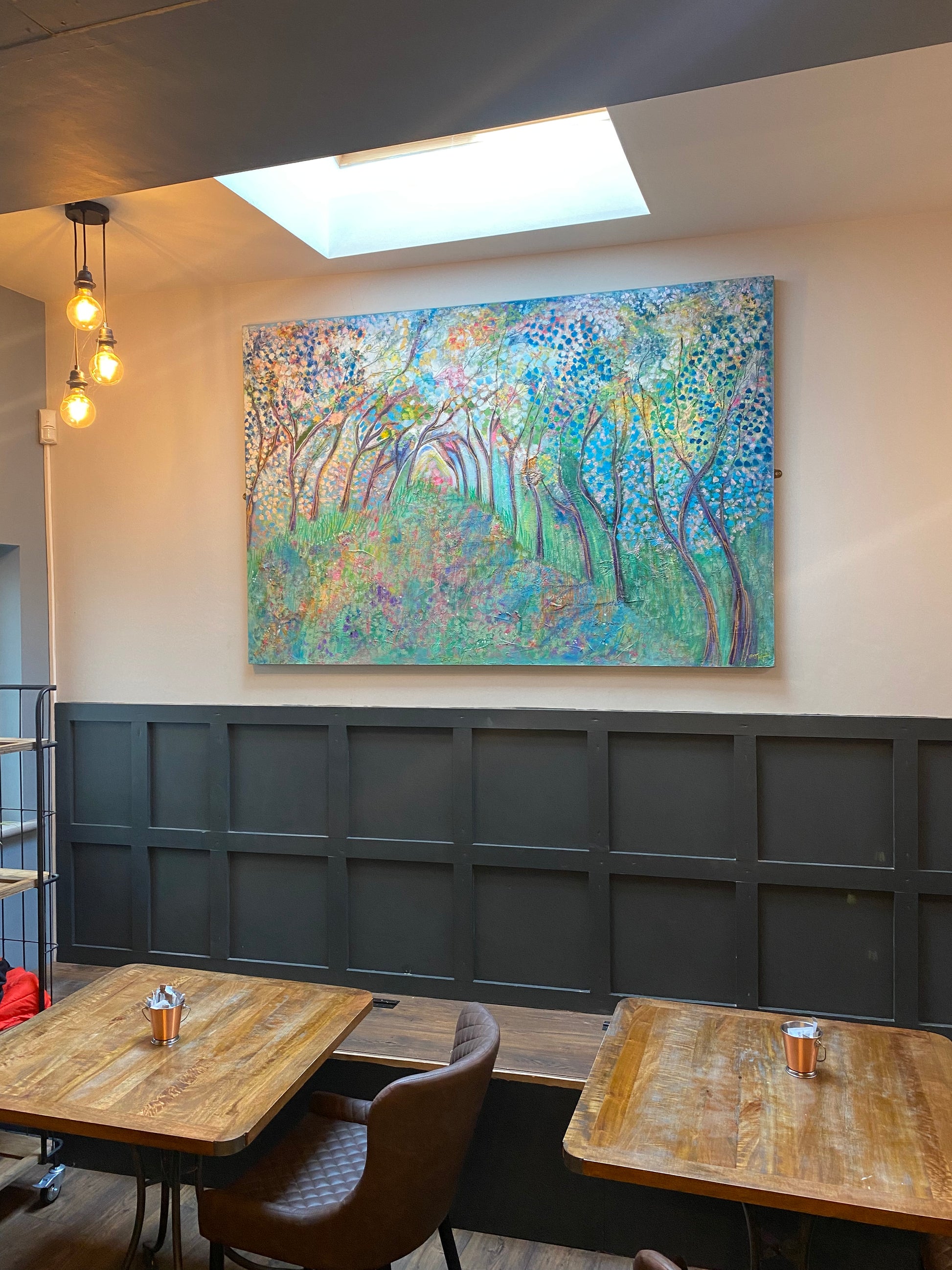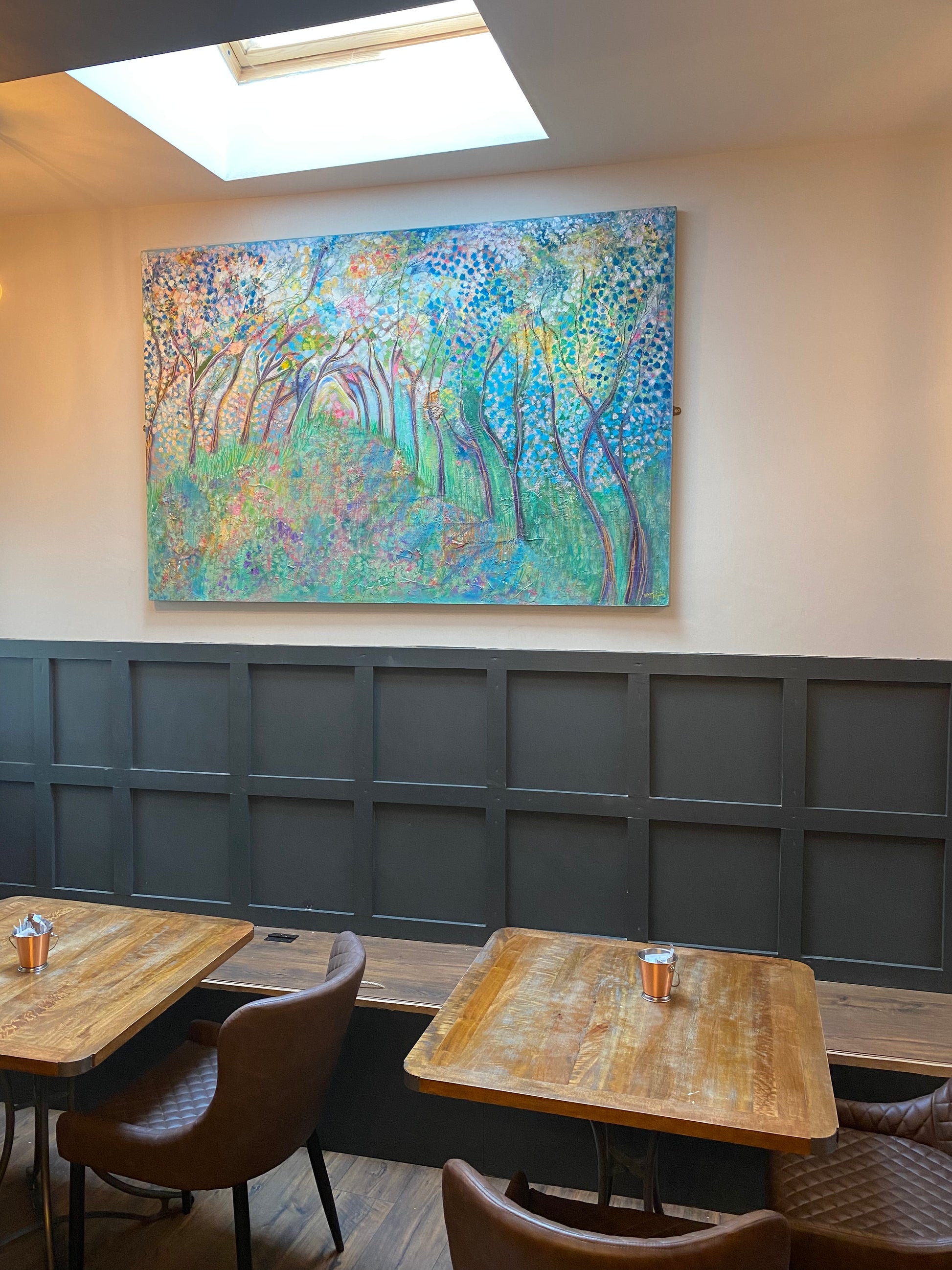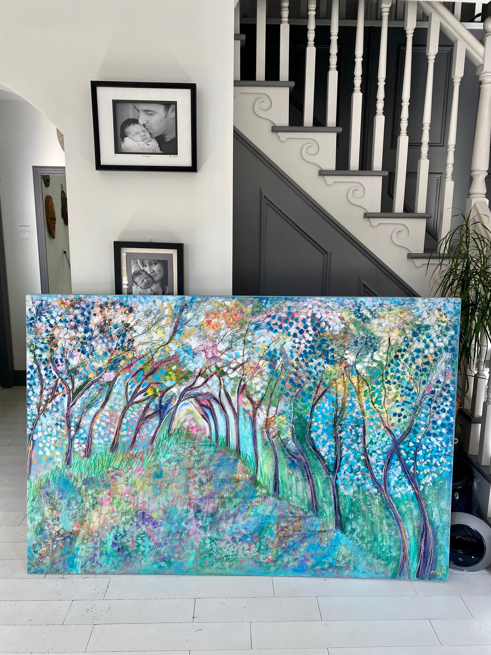 This painting shows the beauty of “Glengarra Woods” painted from memory whilst walking with my family .